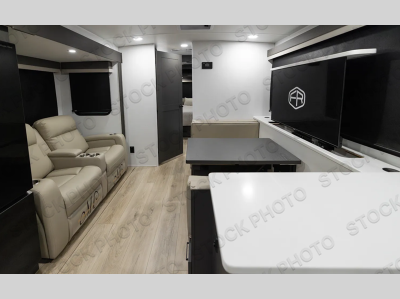 They are each constructed with six-sided aluminum framed walls, floor and roof, and include complete composite wall construction for added durability and insulation. You will also appreciate the enclosed underbelly for added protection! Inside, there is hidden hinge cabinet doors, roller shades, solid surface kitchen countertops, and lino flooring in the slides.