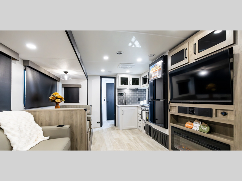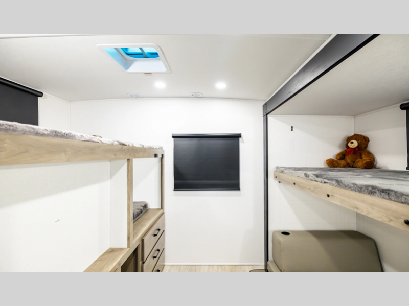 Sleeps 7 Slides 1 Black Water Capacity 30 gals Number Of Bunks 2 Available Beds RV Queen Refrigerator Type Electric Refrigerator Size 11 cu ft Cooktop Burners 3 Shower Size 24" x 36" Number of Awnings 1 LP Tank Capacity 20 lbs AC BTU 15000 btu Awning Info Power with LED Lights Axle Count 2 Number of LP Tanks 2 Shower Type Standard Similar Floorplans